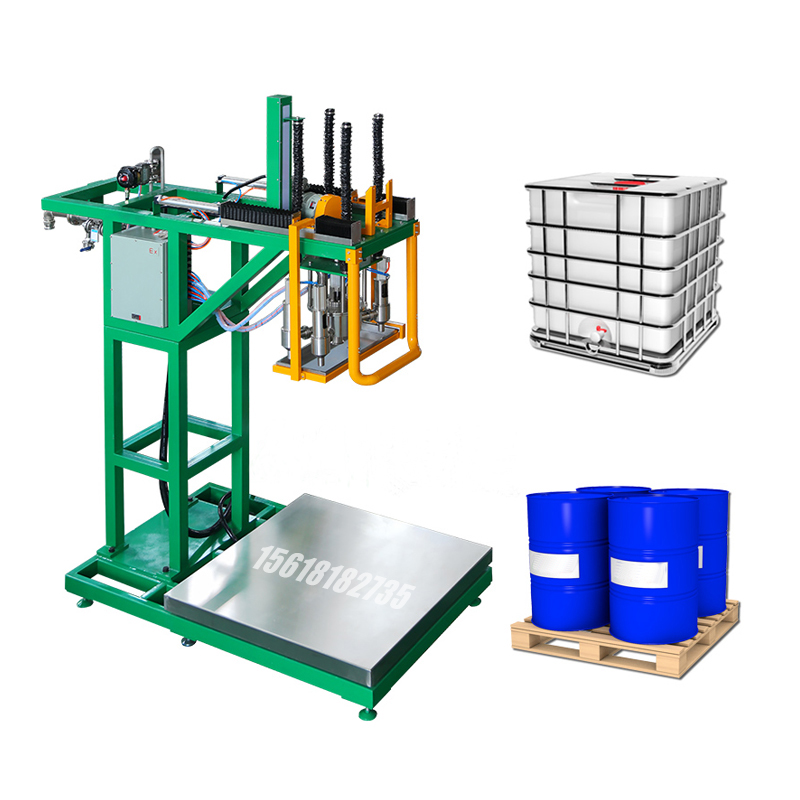 液體化工灌裝機(jī)■ 應(yīng)用范圍:設(shè)備適用于化工、石化、食品原料、醫(yī)藥等行業(yè)。基本參數(shù):■ 使用電源:AC220V 50/60HZ 0.2KW 使用氣源:0.5~0.7 Mpa■ 灌 裝 量:100~1200kg 分度值:0.1kg■ 灌裝能力:200L 40~48桶/H、IBC噸桶 6~8桶/H■ 灌裝精度:≤ 0.1% FS■ 灌槍材質(zhì):SUS304/SUS316/PTFE(可選)■ 防